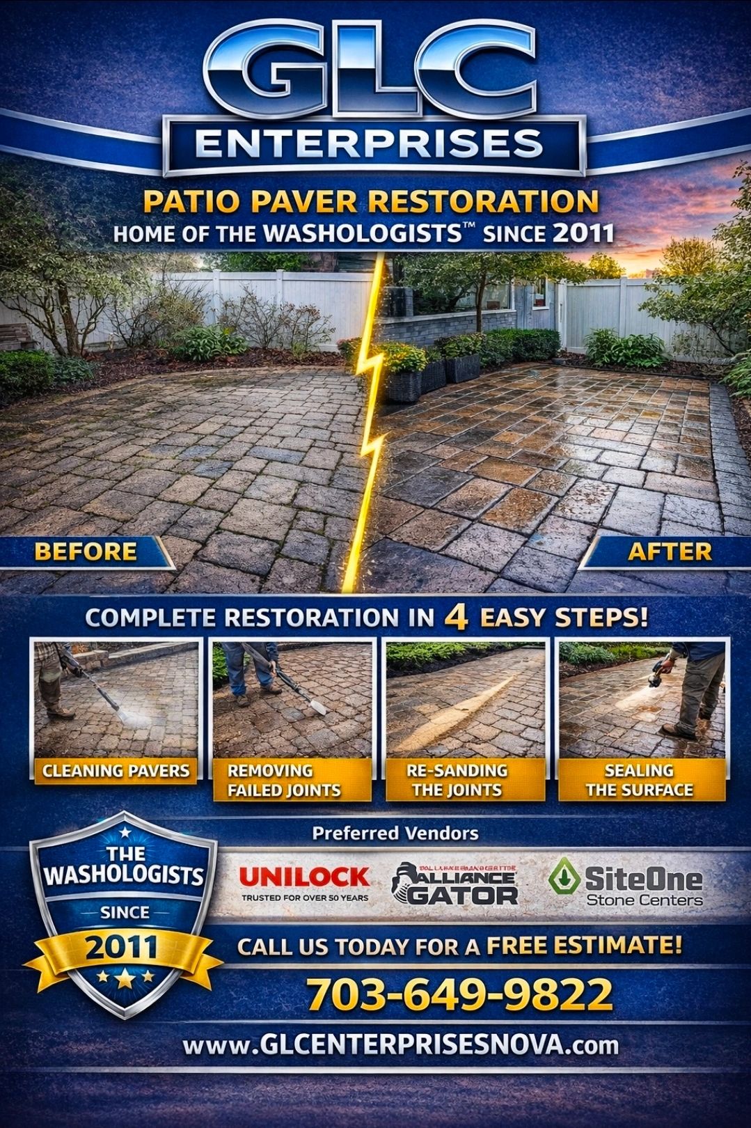 At GLC Enterprises, we specialize in breathing new life into your outdoor spaces with expert patio, walkway, and front stoop restoration services. Whether your pavers have shifted over time, grout lines have cracked, or surfaces have dulled from years of exposure to the elements, our team delivers comprehensive solutions to restore beauty, safety, and functionality to your home's exterior. Serving homeowners across Northern Virginia, we focus on high-quality craftsmanship that stands up to the region's humid summers, freezing winters, and everything in between.